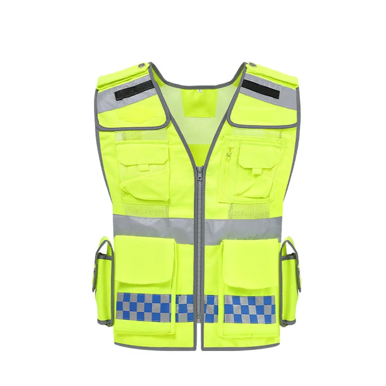 Hi vis Reflective vest zipper mesh vest traffic warning clothing functional multi pocket building s