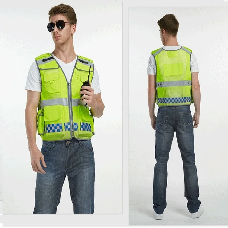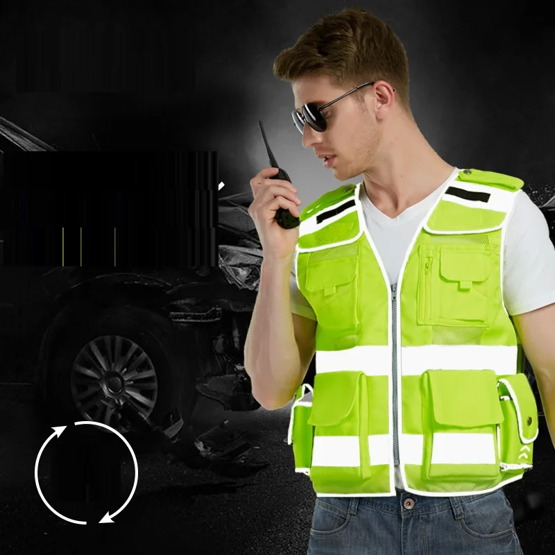 ORIGINAL Hi vis Reflective vest zipper mesh vest traffic warning clothing functional multi pocket building s
